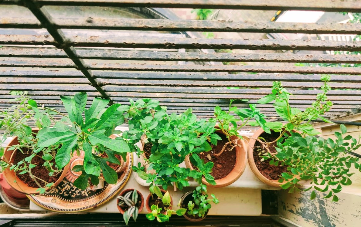 The little window garden kept growing, letting me harvest a few leaves every now and then. In the beginning, it was merely a fleeting concern. Soon, it looped me in. It made me into a hawk. Now I’m either waiting for the leaves to uncurl, smelling the basil, pruning the mint, eyeing the tomato or laying honey traps for gnats, inspecting spots and buying more pots than the space can hold. In the past, it would have been the pine forest, the blanket under the gulmohar, a fern to press into a book. A walk through the wilderness, eating wild berries, crossing small river streams. Away from it all, it’s become my connection with nature. It’s grown on me. It has brought focus, surprise, learning, respite and joy on even the bleakest of days.