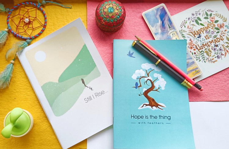 Hi there! This has been in the works for ages. We are starting with a couple of notebooks in what we call ‘The Hope Series.’ The artwork is based on poetry that we love and keep going back to. As you flip the pages while jotting down your notes and impressions, we hope these verses provide you the same anchor.