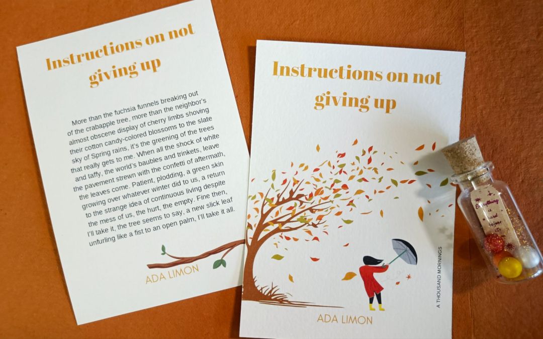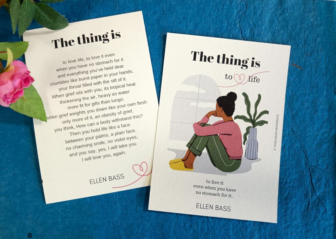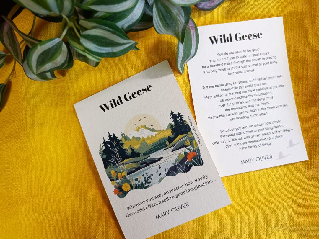 If you are a reader of A Thousand Mornings, you know the role poetry plays in our lives. In a world that is going to shambles, where each day crosses a new line, it becomes incredibly hard to go on with your life. To notice things, to enjoy small pleasures, to set goals, to practice an art. It’s in these dark moments that poetry offers a glimmer of hope. It asks you to stand witness, to hold on, to grieve, to help, to find nature, to heal yourself as best you can. We hope these poetry cards can help you find comfort, inspiration and wisdom to battle the odds.